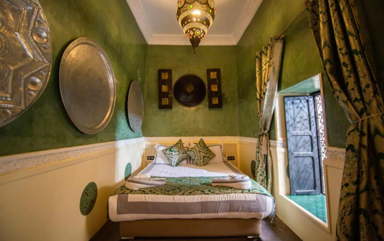 Riad Ta'achchaqa boasts 8 luxurious, air-conditioned rooms, each designed to offer an atmosphere of warmth and relaxation. The rooms are a blend of traditional Moroccan decor, with hand-painted tiles, lush textiles, and wooden furniture, paired with modern comforts such as free Wi-Fi, comfortable beds, and ensuite bathrooms. Some rooms offer stunning views of the courtyard, while others overlook the city, giving guests a variety of options depending on their preferences.